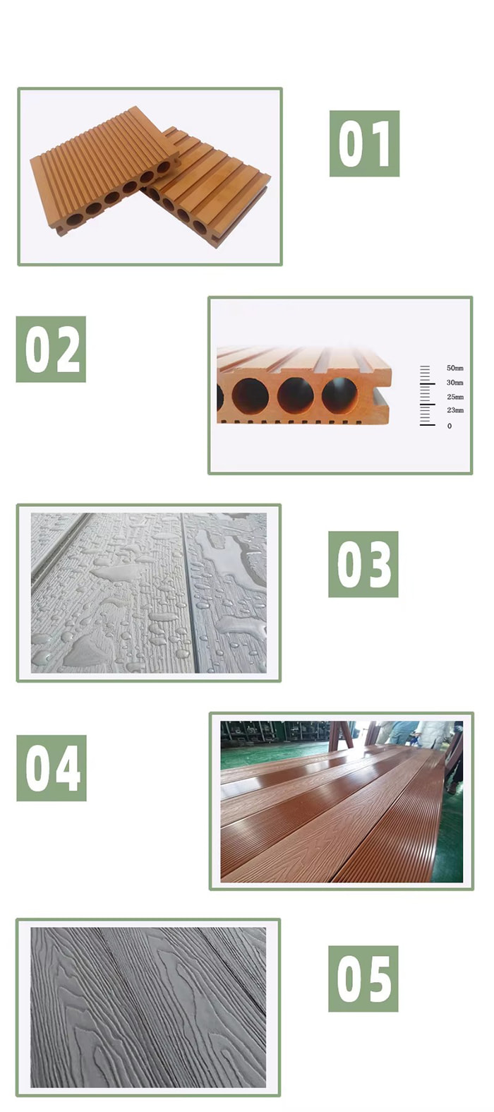 Főbb termékeink a következők: PVC mennyezeti panelek, PVC falpanelek, WPC falpanelek, melegbélyegző fólia, PVC lamináló fólia, SPC padló, WPC burkolat és egyéb kapcsolódó termékek. Éves árbevételünk elérheti a 35 millió USD-t.