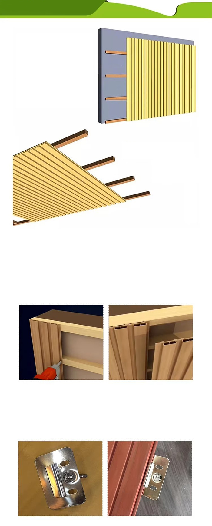 Középületek: Konferenciatermek, szórakozóhelyek, borospincék, szekrények stb., a WPC beltéri panelek vízálló, tűz- és rovarálló tulajdonságai ideális dekorációs anyaggá teszik.