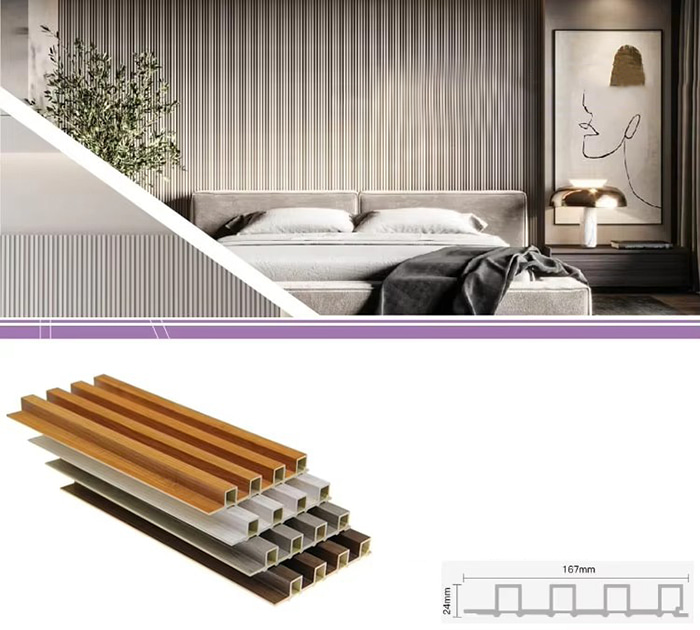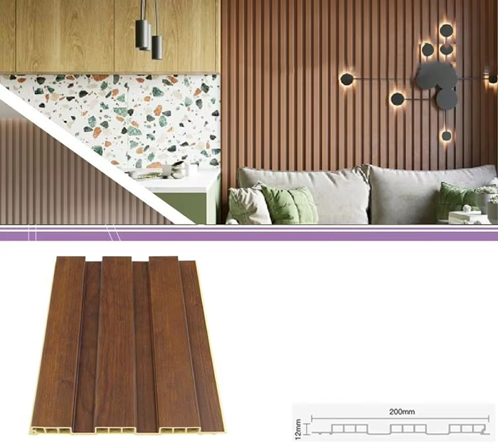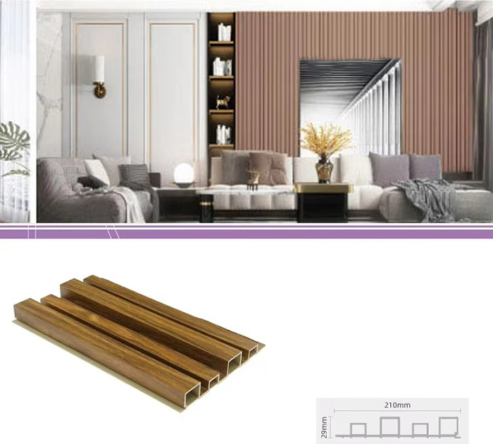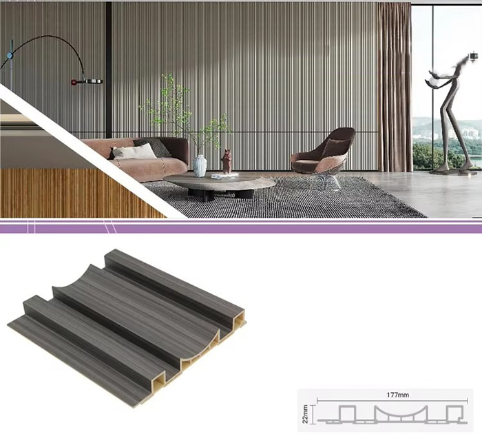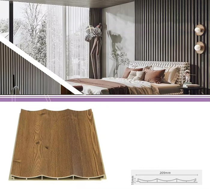 A WPC beltéri panelek vagy fa műanyag kompozit beltéri panelek egy új típusú környezetbarát építőanyag, amely farostból vagy faporból készül, hőre lágyuló műanyagokkal (például polietilénnel, polipropilénnel vagy polivinil-kloriddal) kombinálva. Ez az anyag magas hőmérsékletű extrudálási eljárással készül, és a felületet általában laminálással, 3D nyomtatással vagy film laminálással díszítik, ami természetes textúrát és a fához hasonló tapintást mutat, miközben a műanyag tartósságával és időjárásállóságával is rendelkezik. A WPC beltéri panelek nem csak a fa gyönyörű megjelenésével rendelkeznek, hanem leküzdik a fa hiányosságait is, mint például a könnyű deformálódás, a nedvesség felszívódása és a bomlás, így ideális beltéri dekorációs anyag