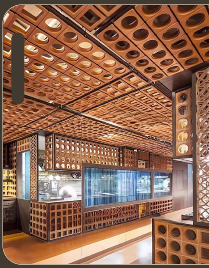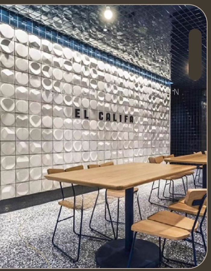 Építészeti dekorációBelső fal/mennyezet: Az olyan kialakítások, mint a fémkefés és a faszemcsék áthelyezése, javítják a tér textúráját, és alkalmasak szállodákban, kiállítótermekben, villákban stb.