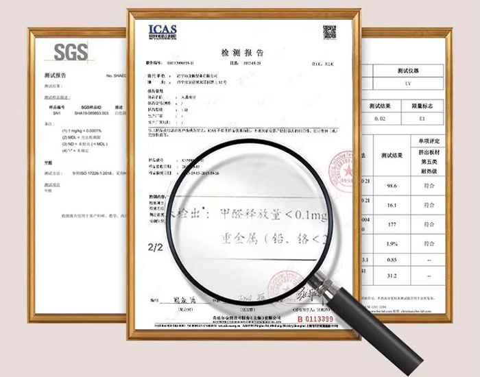 Tűzteszt: GB 8624 szabvány, B1 égésgátló.Környezetbarát eljárás Ólom- és kadmiummentes környezetbarát formulát alkalmaz, és a gyártási folyamat során a keringető vízhűtőrendszer csökkenti a szennyezést.